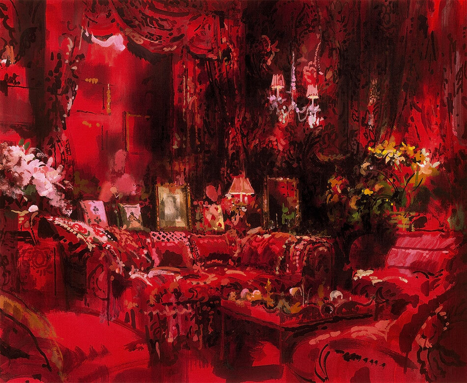 🎨 Been fascinated with Jeremiah Goodman’s gorgeous paintings, especially the “garden in hell"— which was the living room of former Vogue Editor-in-Chief, Diana Vreeland. Her eclectic home has inspired an abundance of beautiful derivative works. See attached photos for examples.